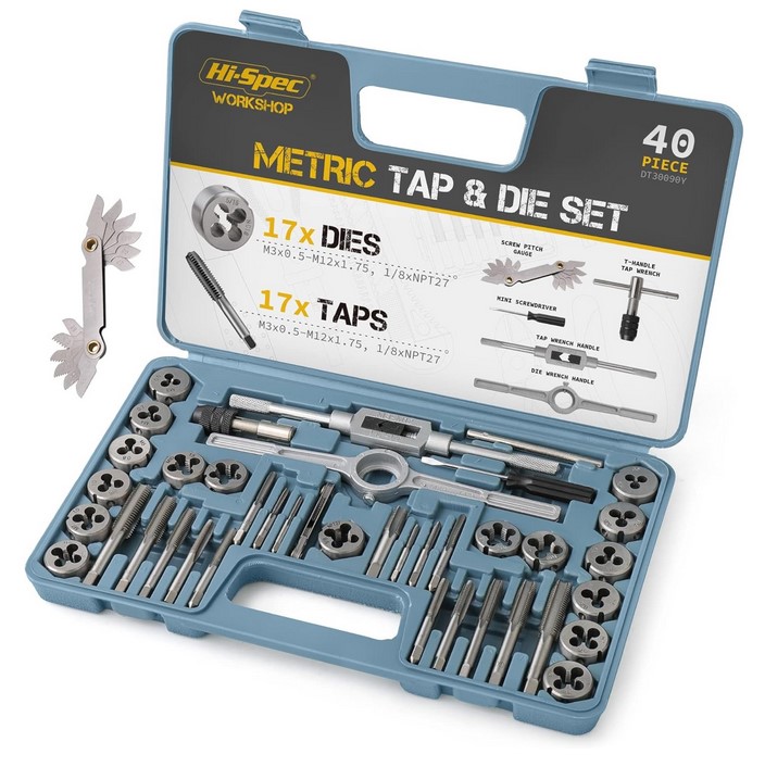 Hi-Spec 40-częściowy zestaw gwintowników i narzynek metrycznych. Kompletny zestaw gwintowników i narzynek od M3 do M12