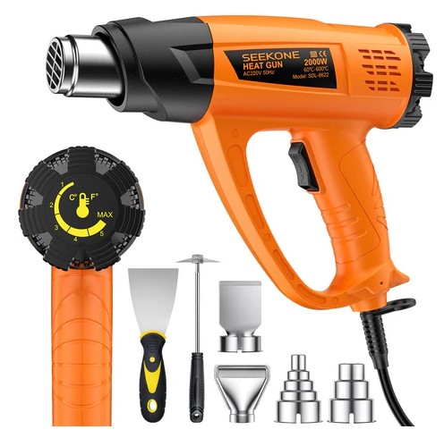 Zestaw pistoletu na gorące powietrze SEEKONE, zmienna regulacja temperatury 60 – 600 Dmuchawa gorącego powietrza z 7 akcesoriami