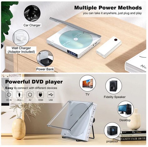 Maite przenośny mini odtwarzacz DVD, wolny od ograniczeń regionalnych z wyjściem AV portu HDMI 1080P, NTSC PAL, odtwarzacz DVD do telewizora z kablem AV HDMI USB, pilotem, odtwarzaniem i obsługą, nie obsługuje Blueray (3801)