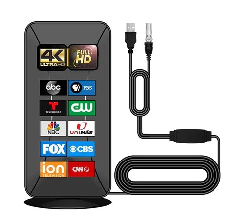 Antena telewizji cyfrowej 4K HD, zasięg 520 km, inteligentny wzmacniacz sygnału, do zastosowań wewnętrznych i zewnętrznych, kompatybilna ze wszystkimi telewizorami, zawiera 10-metrowy kabel koncentryczny, 1080P VHF UHF, bezpłatne kanały (3840)