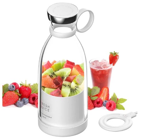 Blender Smoothie Makers, 350 ml przenośny blender mini dzbanek, wielofunkcyjny osobisty, świeży sok mikser butelka do zabrania z USB akumulator biały (3842)