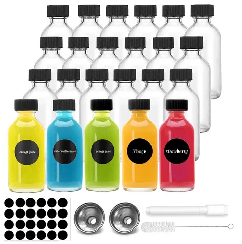 24 sztuki małych buteleczek do napełniania, 60 ml do napełniania, mini szklane buteleczki z pokrywką i lejkiem, etykieciarka (3817)