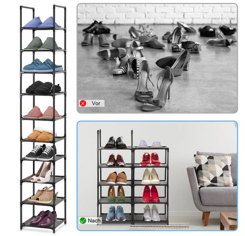 10-poziomowy pionowy stojak na buty, wąski, wolnostojący, solidny, składany organizer na buty z włókniny i metalu do przedpokoju, sypialni, szary (3820)