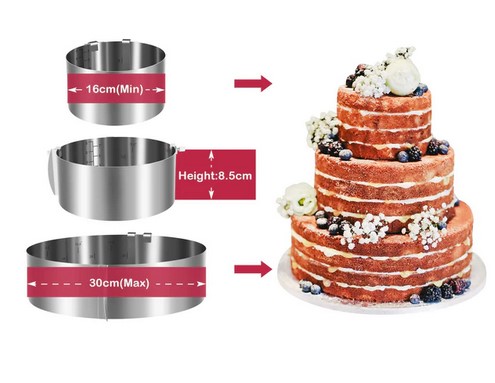 Marsred 8,5 cm regulowany pierścień do pieczenia ciasta ze śrubami, pogrubiona okrągła forma do pieczenia ze stali nierdzewnej 304, 16-30 cm, stabilna rama do pieczenia okrągłego (3827)