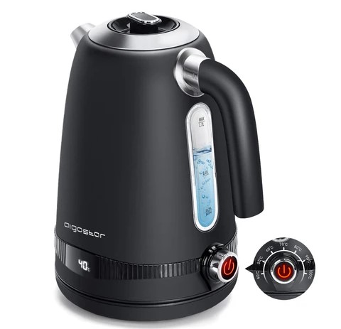 Aigostar Loki – Cyfrowy czajnik ze stali nierdzewnej z ustawieniem temperatury 40-100 stopni, wyświetlaczem temperatury, funkcją utrzymywania ciepła, czajnik elektryczny 1,7 litra 2200 W, zaparzacz do herbaty w stylu retro (3804)