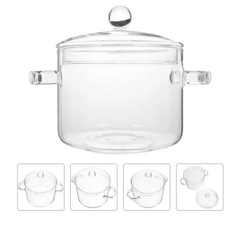 Szklany garnek do gotowania szkło borokrzemianowe z uchwytem i pokrywką. Garnek kuchenny do makaronu, zupy z makaronem, mleka, 1350 ml (3778)