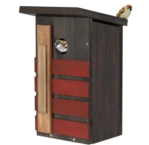 Budka dla rudzików, sikorek modrych, zięb i ptaków ogrodowych, domek dla dzikich ptaków na zewnątrz, wiszący drewniany (3799)