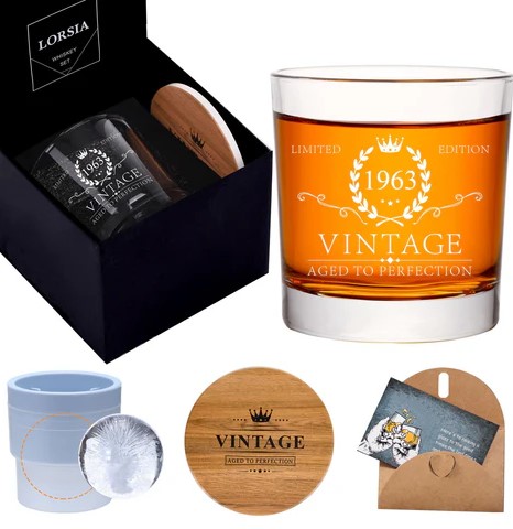 Prezent na urodziny dla mężczyzn, szklanka do whisky w pudełku prezentowym, – foremka na lód w kształcie podstawki pod kubek(3570)
