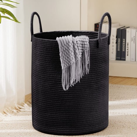 YOUDENOVA Kosz na pranie tkany do zbierania prania, przechowywanie zabawek, kosz do przechowywania z uchwytem, ręcznie wykonany z bawełny, Z-Brown, czarny (3825)