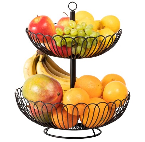 Stojak na owoce Chefarone, duży – miska na owoce 33 cm – stylowy kosz na owoce, czarny, XL (3738)