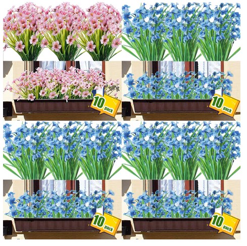 FRLONE 10 wiązek Sztuczne kwiaty Zewnętrzne plastikowe kwiaty Sztuczna zieleń