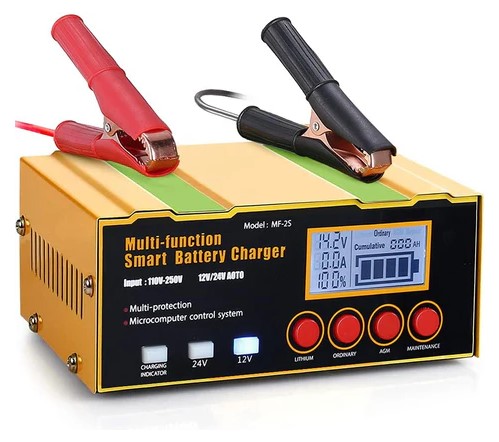 DSGKUU Ładowarka samochodowa 12A 12V 24V W pełni automatyczna inteligentna ładowarka konserwacyjna z ekranem LCD do wszystkich akumulatorów 12V24V, litowych, AGM EFB (3863)