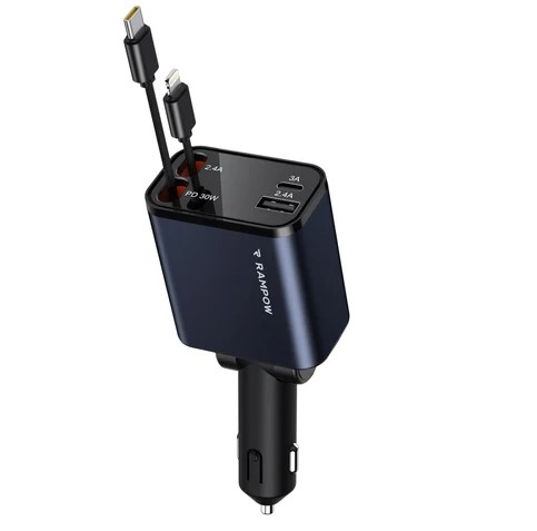 RAMPOW Rozkładana ładowarka samochodowa, ładowarka samochodowa do zapalniczki, 65 W 4 w 1 ładowarka samochodowa USB C, (3858)