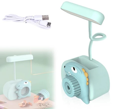 Acboor, Lampa biurkowa dla dzieci z temperówką Dinozaur z uchwytem na długopis Lampa stołowa LED z możliwością ściemniania Akumulatorowa dziecięca lampa stołowa do czytania, nauki, pracy, niebieska (3822)