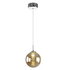 Euone Clothes LED G4 Szklana kula wisząca lampa z kryształowymi frędzlami, wisząca lampa w kształcie kuli z wykończeniem chromowanym, żyrandol do willi, schodów, salonu, bursztynowy (3846)