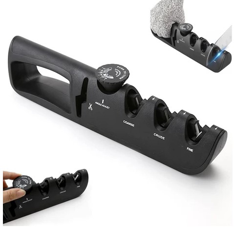 Profesjonalna ręczna ostrzałka do noży 4 w 1 z ostrzałką nożycową, pokrętło z regulacją kąta, odpowiednia do kuchni (3803)