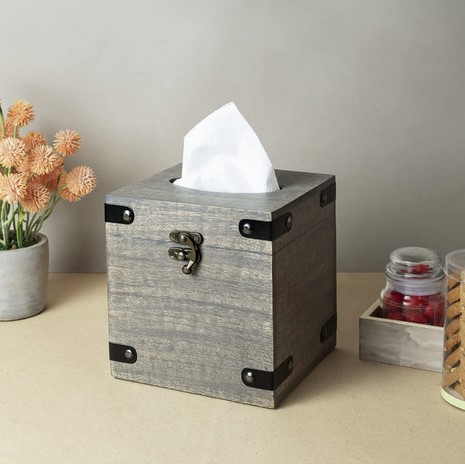 Drewniany kwadratowy uchwyt na chusteczki GoCraft do łazienki, toaletki, sypialni, szafek nocnych, biurek i stołów – 14,6 x 14,6 x 16,5 cm (3805)