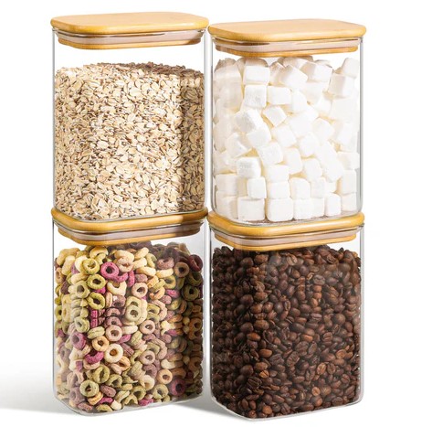 ComSaf 1.1L prostokątne szklane słoiki do przechowywania z pokrywką zestaw 4 sztuk, hermetyczne słoiki do przechowywania z kwadratowymi pokrywkami (3859) 95,00 zł