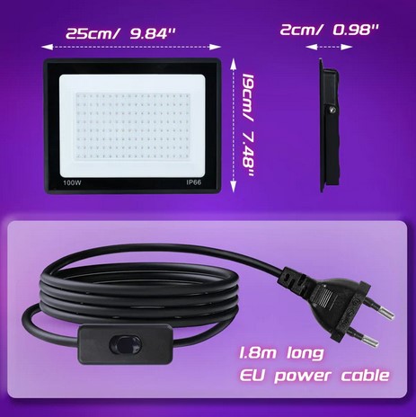 BOSYTRO UV Blacklight 100 W Blacklight, IP66 Wodoodporny reflektor LED Blacklight, lampa UV Blacklight, do dyskotek, imprez świetlnych, dekoracji na Halloween, oświetlenia scenicznego, akcesoriów imprezowych (3830)