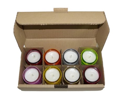 Opakowanie 8 świec Citronella w kolorowych szklanych słoikach Mieszanka wosku roślinnego Knot bawełniany Czas palenia każdej świecy 18 godzin Bez parafiny ( 3781)