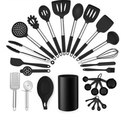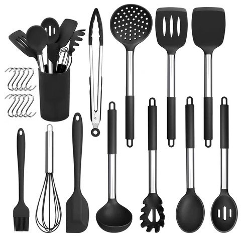 Herogo 22-częściowy zestaw silikonowych przyborów kuchennych, odporne na ciepło przybory kuchenne z uchwytem ze stali nierdzewnej, nieprzywierające (3788)