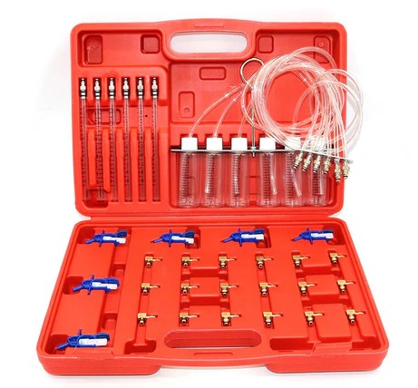 QUNNIE Common Rail Tester 6-cylindrowy Diesel Return Flow Tester Zestaw narzędzi testowych Common Rail Adapter Tester wtryskiwaczy z 24 adapterami (3576)