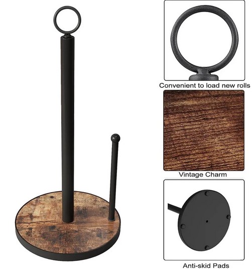 OROPY Uchwyt na papier toaletowy kuchenny z solidną drewnianą podstawą, uchwyt na papier toaletowy w stylu rustykalnym, brązowy (3831)