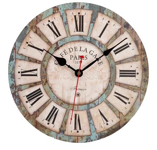 ACCSHINE Vintage Zegar ścienny Drewniany zegar ścienny Bez tykania 30 cm Cyfry rzymskie (3735)