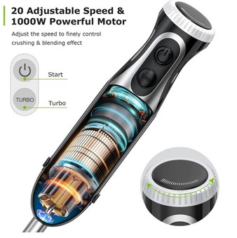 Elektryczny blender ręczny 4 w 1, 1000 W, bezstopniowa prędkość, stal nierdzewna, 500ml i 700 ml (38567