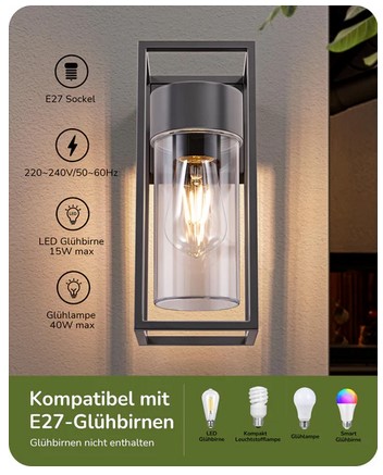 EDISHINE kinkiet do wewnątrz i na zewnątrz, oświetlenie tarasu, balkonu, nowoczesne, bez żarówki, IP44 wodoodporny, czarny(3876)