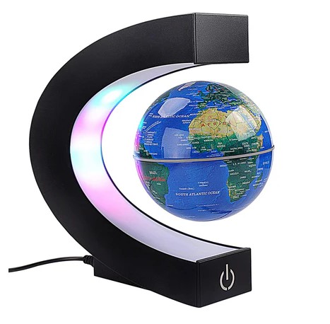 Magnetyczny pływający glob z kolorowymi diodami LED, kształt litery C, antygrawitacyjna, obrotowa mapa świata Maglev, prezent, dekoracja biurka w domu i biurze, z przełącznikiem (3796)
