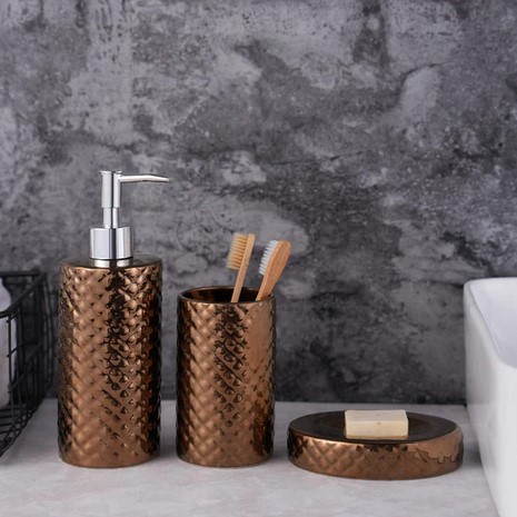 3-częściowy zestaw dozowników mydła z brązowym wzorem diamentowym, dozownik mydła łazienkowego, mydelniczka i kubek na szczoteczkę do zębów (3795)