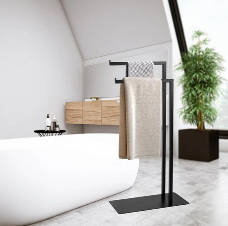 Wolnostojący czarny uchwyt na ręczniki bez wiercenia, uchwyt na ręczniki kąpielowe, wieszak na ręczniki do dekoracyjnej łazienki, salonu, kuchni (3797)