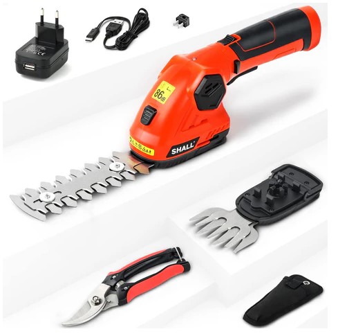 SHALL Bezprzewodowe nożyce do trawy, nożyce do żywopłotu, elektryczne nożyce do krzewów 7,2 V, 2 w 1, przenośna kosiarka do trawy (3787)