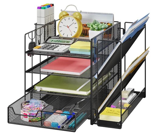 SITHON Organizer na biurko, metalowy organizer na stół z szufladą (3755)