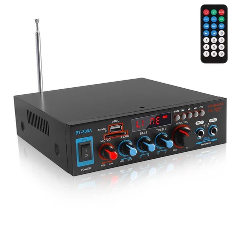 Etlephe Audio Amplifier, wzmacniacz Hi-Fi 800 W, wzmacniacz stereo Bluetooth 5.0, 12 V 220 V, radio FM, przenośne radio z wejściem USB na kartę SD do domu lub samochodu (3785)